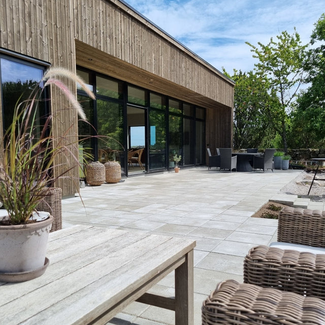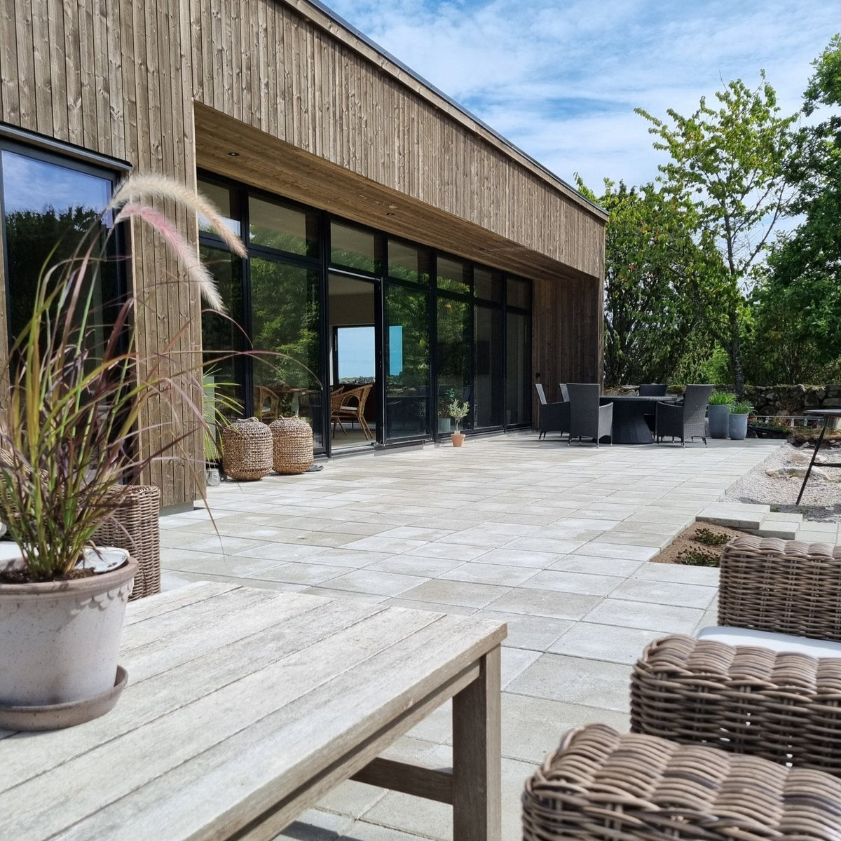 Vi anbefaler bruk av kantstein rundt steinlagte flater for et så stabilt og varig resultat som mulig. Kantstein Moderne er et godt eksempel, med sine slette sider og lette fas – perfekt til slette heller. Utvalget av kantstein er bredt, og det finnes mange alternativer som passer til denne betonghellen. For ekstra stabilitet der flaten skal tåle belastning, anbefaler vi granittkantstein.