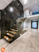 Kalksteinen har en slipt overflate, noe som gir et mykt og behagelig gulv å gå på – enten man går med sko, sokker eller barbent. Slipingen forsterker og fremhever både tekstur og nyanse i steinen.