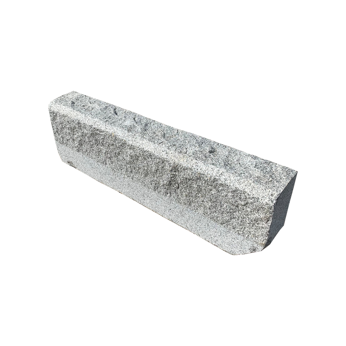 En solid og stilfull granittkantstein med rå bearbeidede overflater på alle synlige sider. Kantstein 15/30 gir en stabil og holdbar ramme rundt belegningsstein, uteplasser eller hageområder.