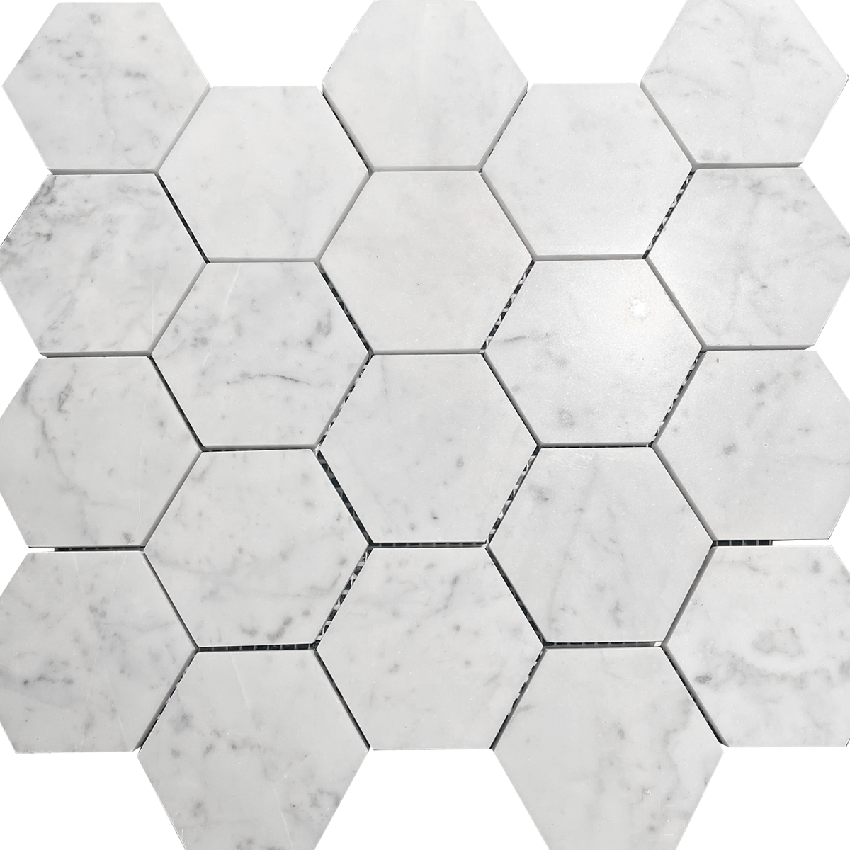Flis Carrara CD Slipt Hexagon Mosaikk 7cm