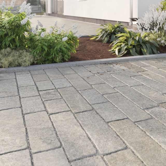 Hellene har stor variasjon i størrelse, hvor de minste bitene fungerer perfekt som passbiter i steinleggingen. Den faste bredden på 150 mm forenkler monteringen, da den ikke trenger å kappes eller tilpasses. Lengdene leveres i fallende lengder, noe som gir en dynamisk og naturlig legging. Glimmerskifer belegningsstein har også naturlig huggete kanter, noe som gir en fin fugebredde.